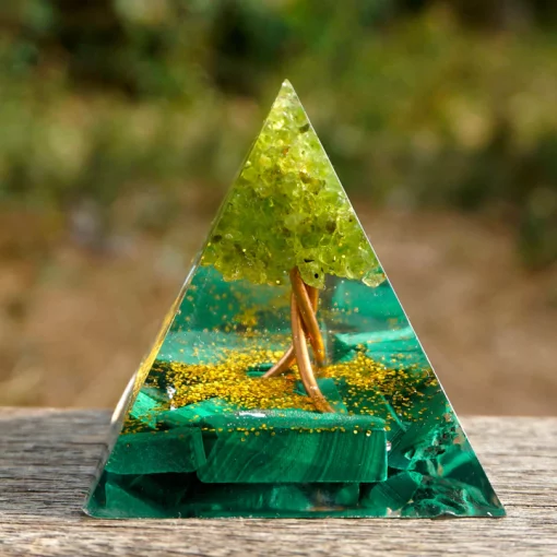 Pyramide d'énergie en malachite et péridot